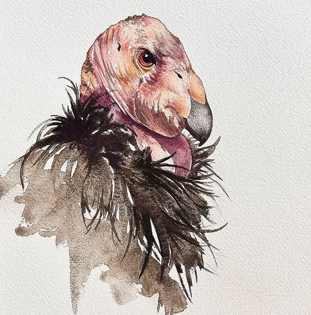 “Nature Conservation has always been a part of my life. I’ve also been a birder for as long as I can remember and avians are at the forefront of my art imagery. I became aware of the plight the California Condors face when I moved to California 16 years ago — and then, with the 2020 Dolan Wildfire having such a grave impact on the Big Sur Flock, I dove even deeper into understanding (and falling in love with) this critically endangered species.” - Jennifer Anderson