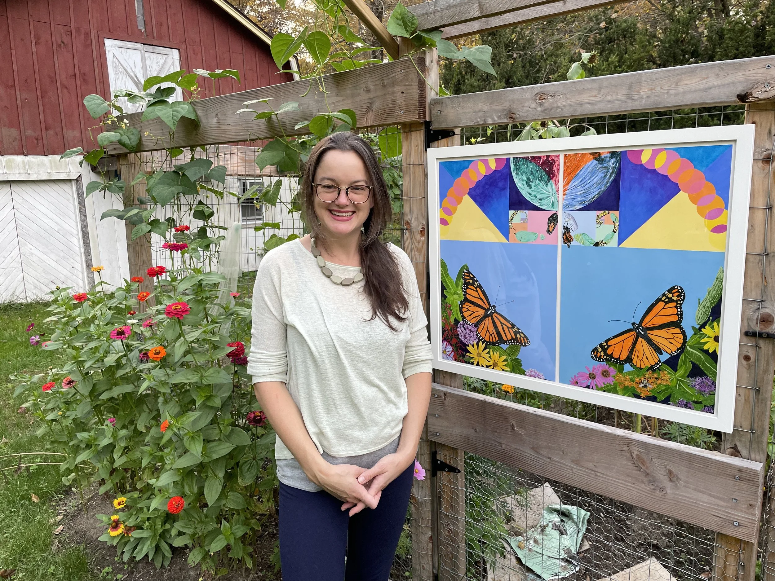 “[My series of five art signs]'Botanical Belonging’ celebrates the magic power of native plants to save this fragile blue planet. Five signs represent the region’s butterfly families and celebrate their host plants. Drawing from Douglas Tallamy’s Homegrown National Park, the zine & paintings inspire people to plant native to create continuous habitat for all species!.”